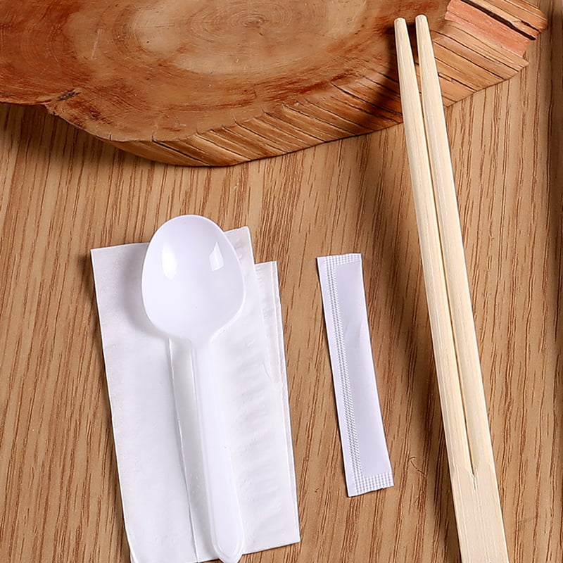 nagykereskedelmi Bambusz pálcika készlet fehér kanállal és szalvétával, fagyos kompozit filmkészlettel